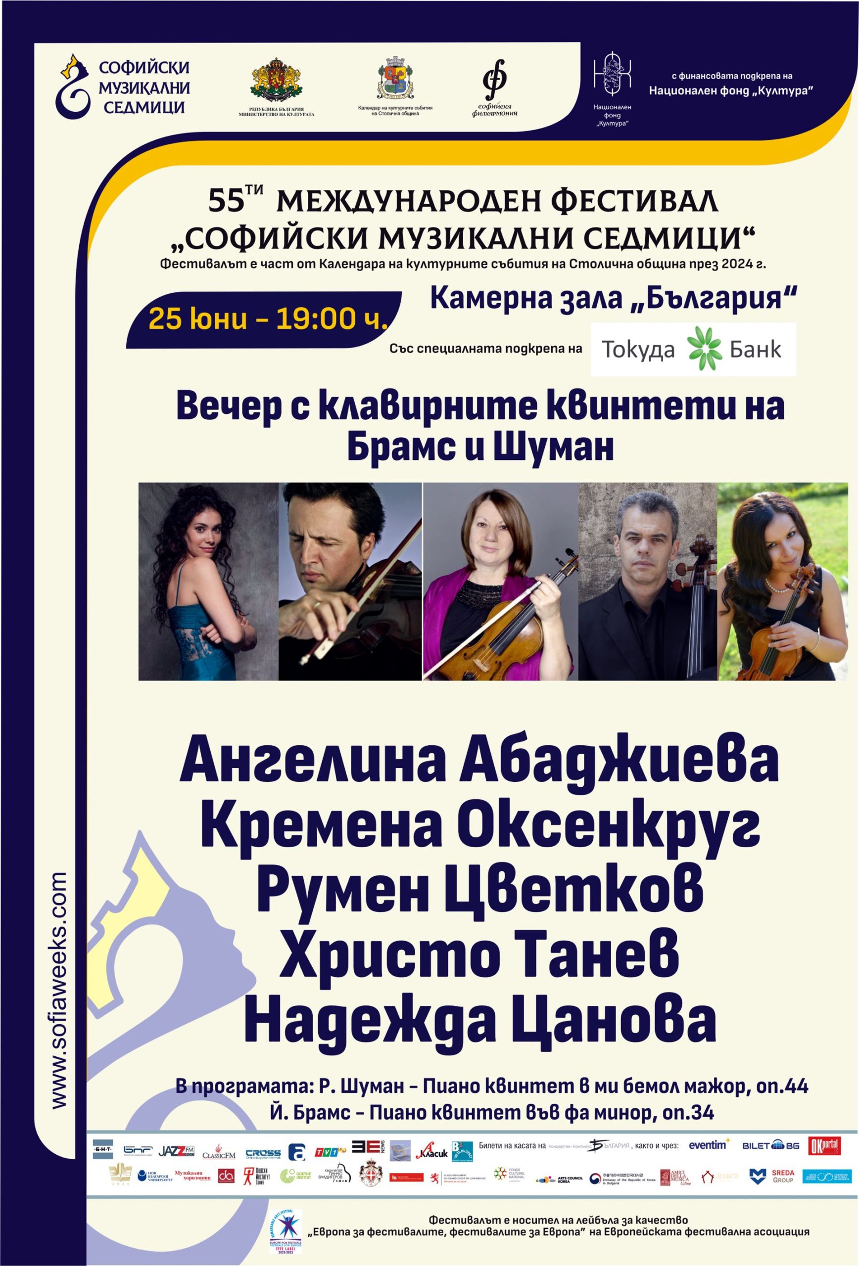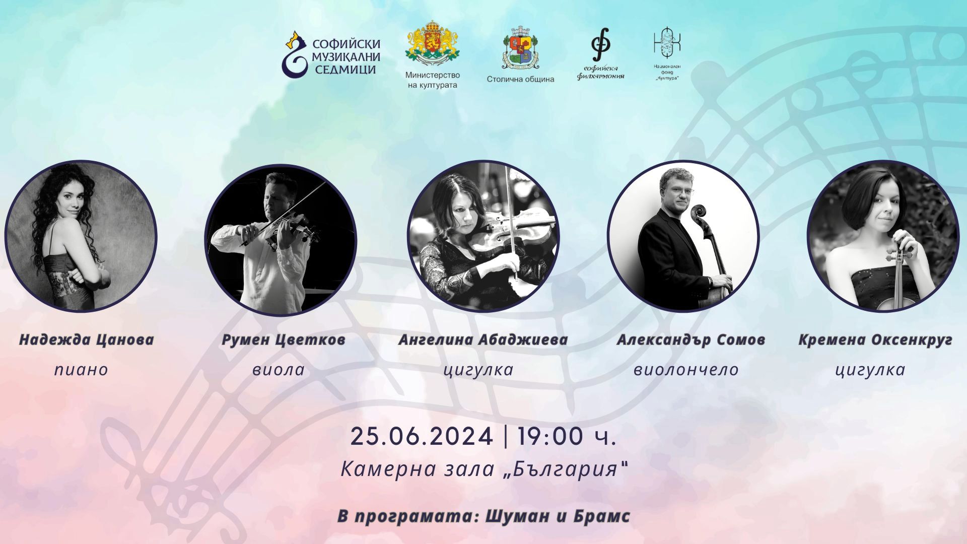 Ангелина Абаджиева и Кремена Оксенкруг – цигулка, Румен Цветков – виола, Христо Танев – виолончело, Надежда Цанова – пиано.