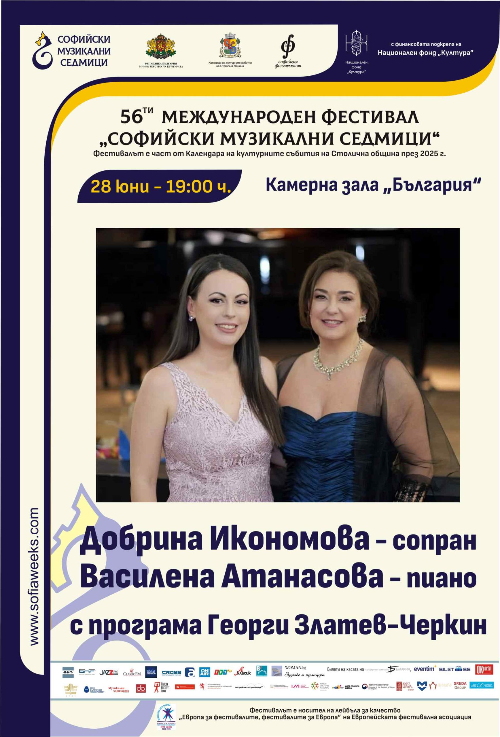 „И наяве, и насън“ – вокален рецитал на Добрина Икономова – сопран и Василена Атанасова – пиано по случай 120 г. на Георги Златев-Черкин.