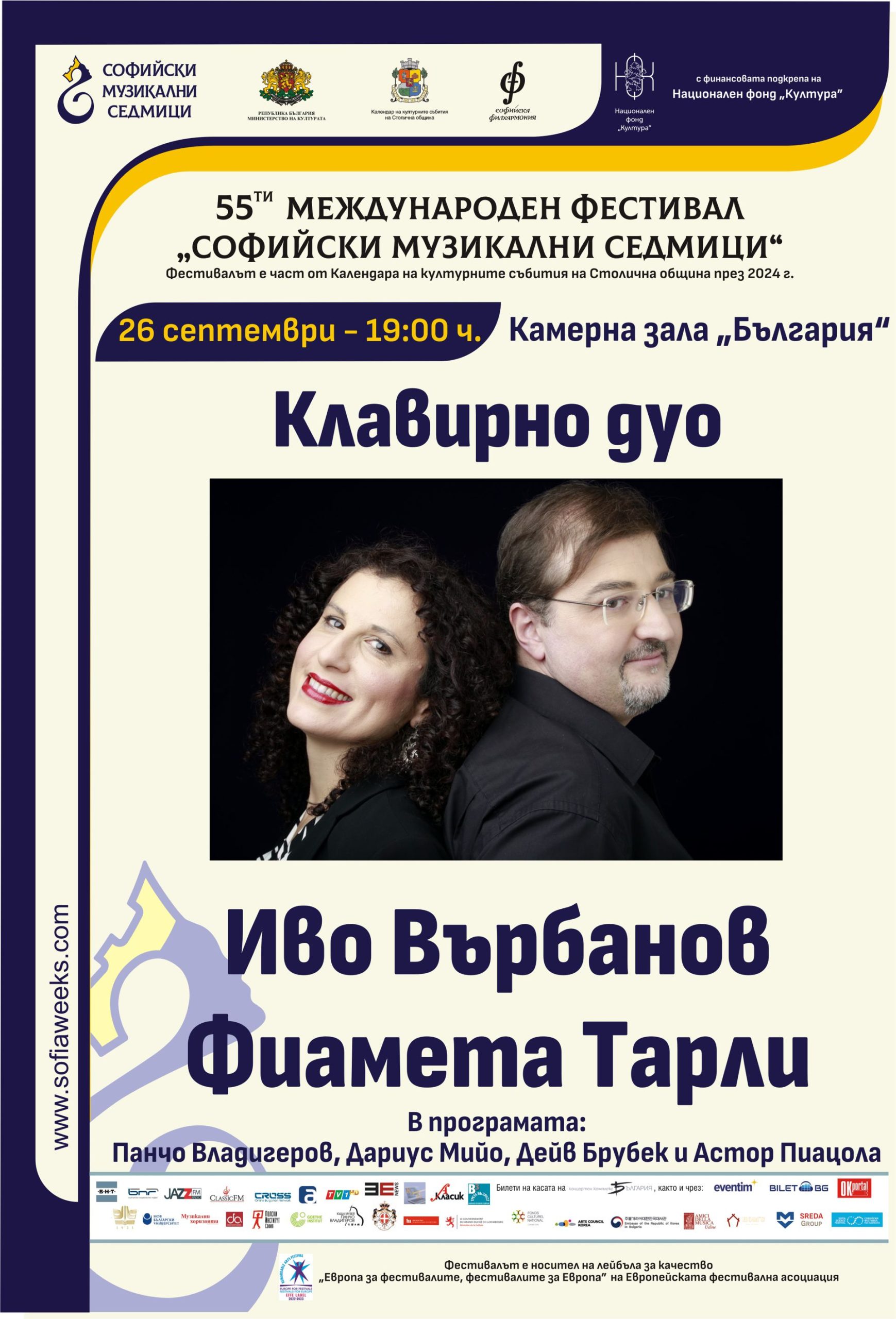 Клавирно дуо Иво Върбанов и Фиамета Тарли. В програмата: Панчо Владигеров, Дариус Мийо, Дейв Брубек и Астор Пиацола.