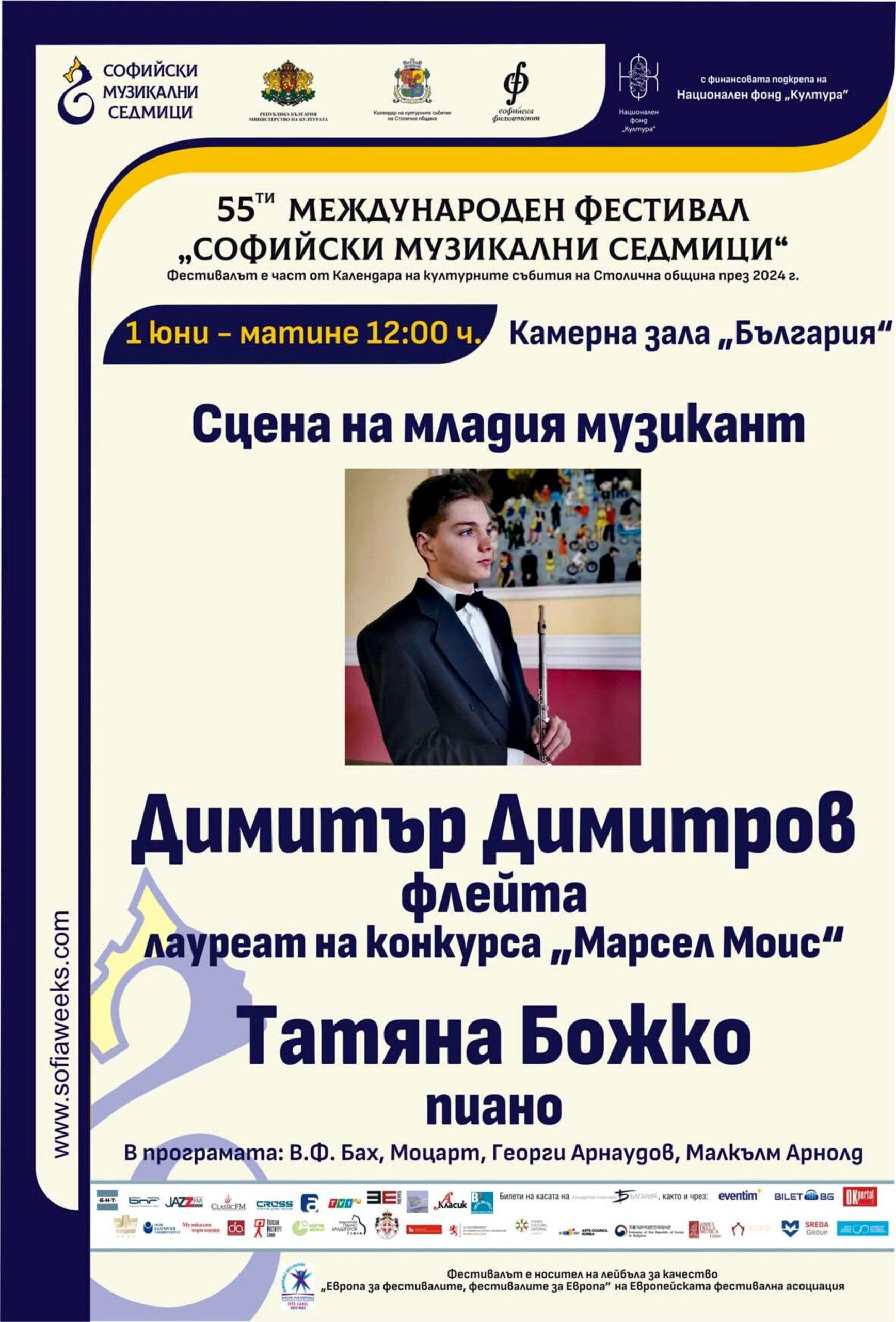 Рецитал на Димитър Димитров – флейта – лауреат на конкурса „Марсел Моис“ и Татяна Божко – пиано.