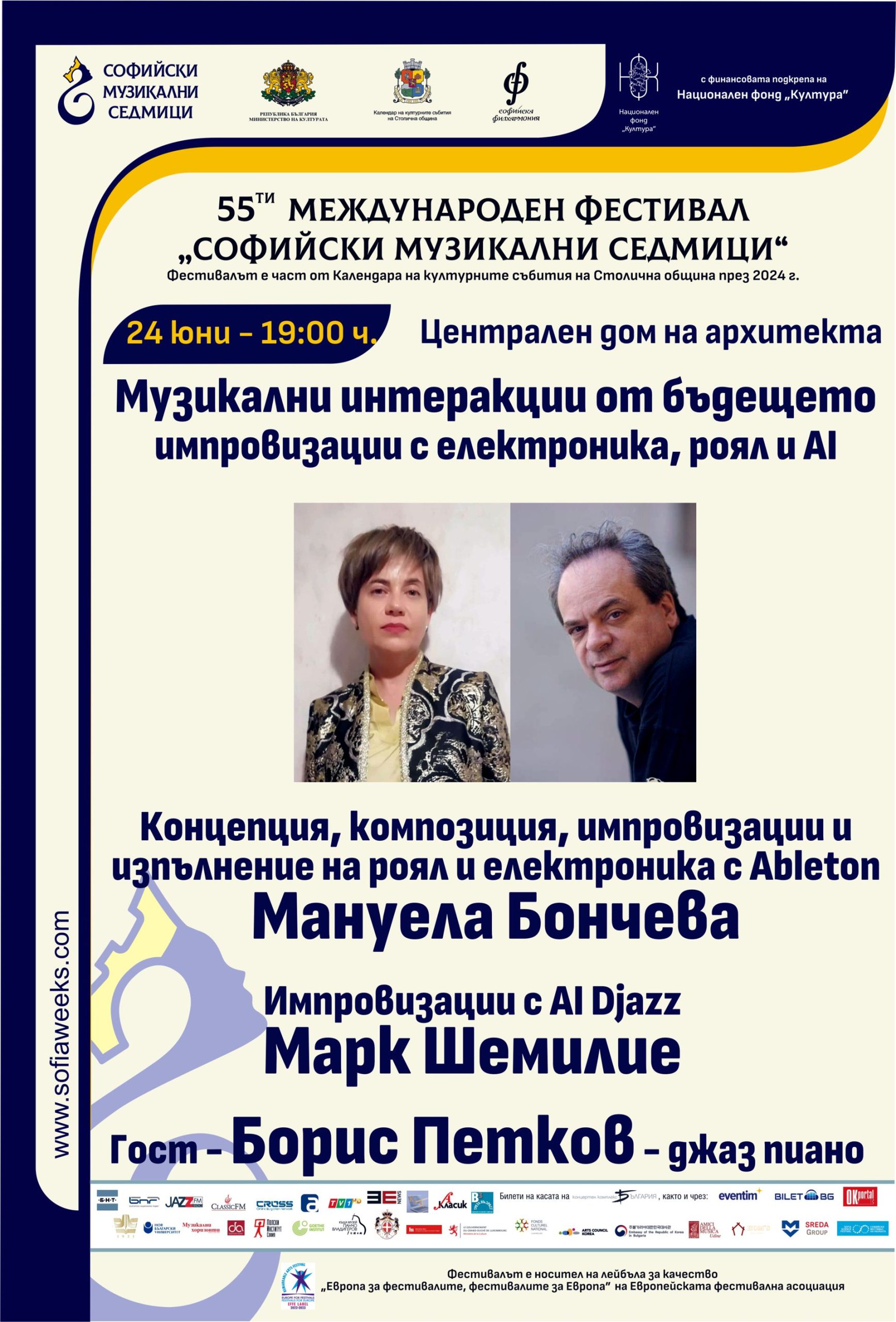 Музикални интеракции от бъдещето: импровизации с електроника, роял и AI – Марк Шемилие и Мануела Бончева. С участието на Борис Петков.